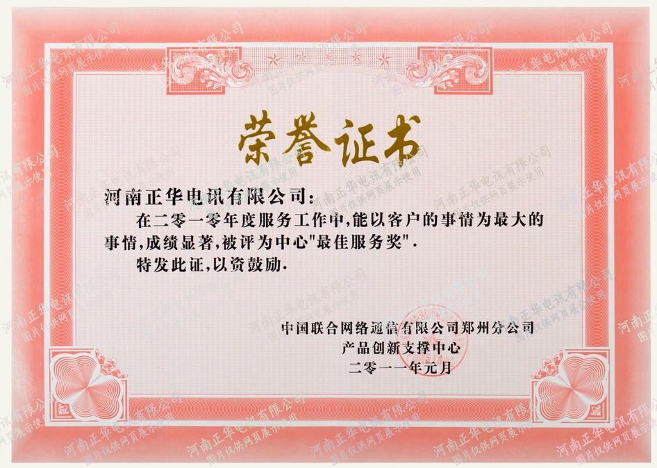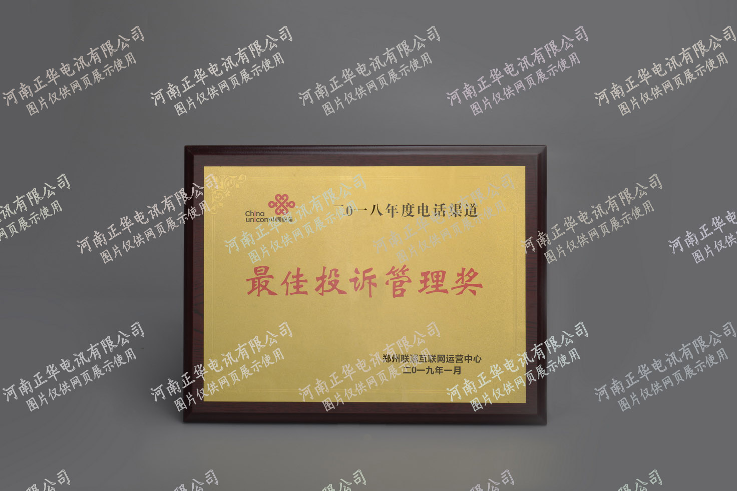 被鄭州聯通互聯網運營中心授予2018年度電話渠道最佳投訴管理獎