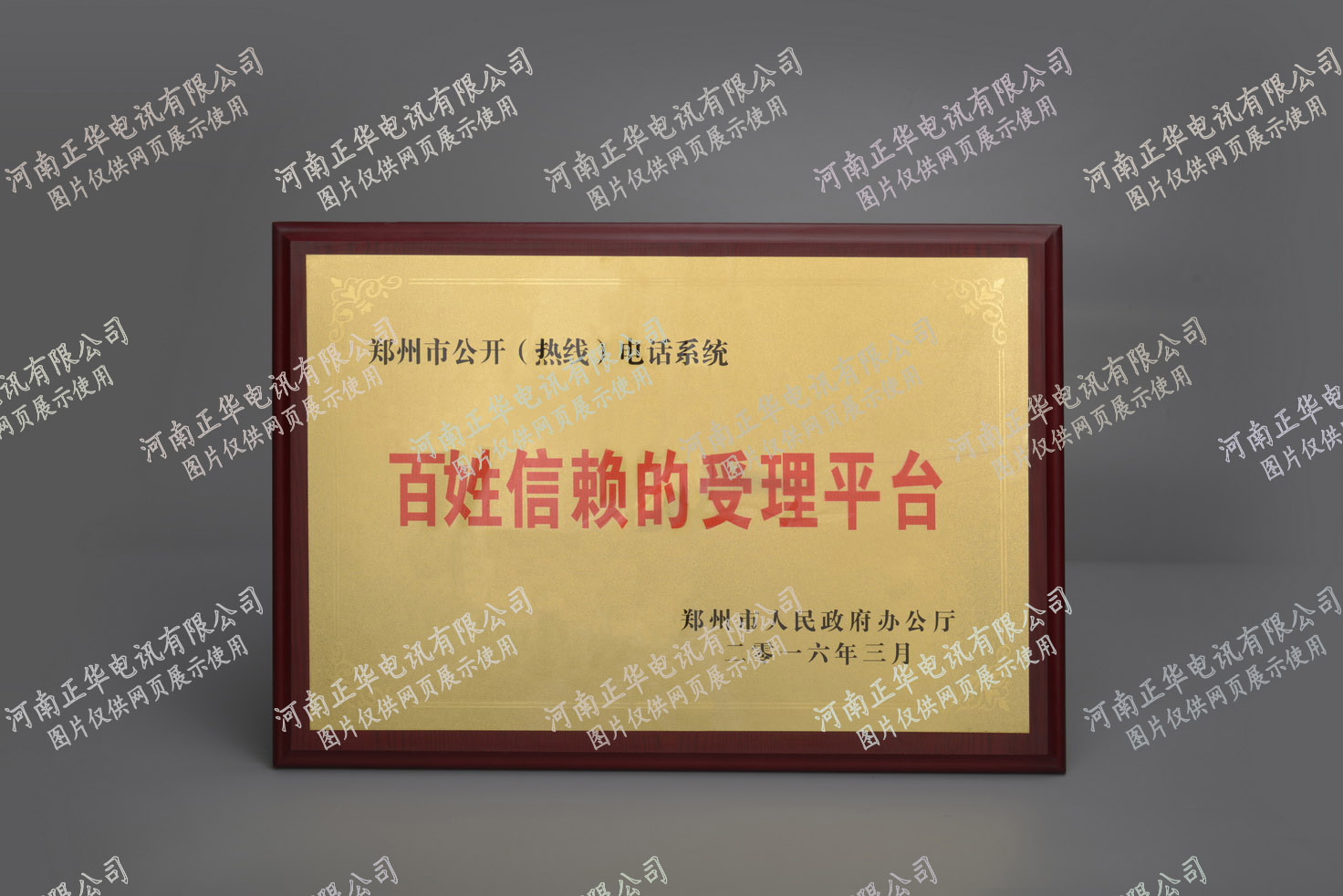 被鄭州市人民政府辦公廳授予百姓信賴的受理平臺