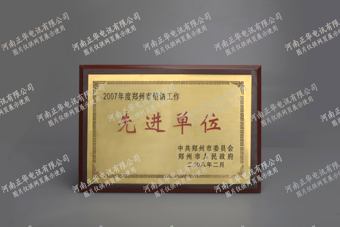 被中共鄭州市委員會、鄭州市人民政府授予2007年度鄭州市信訪工作先進單位